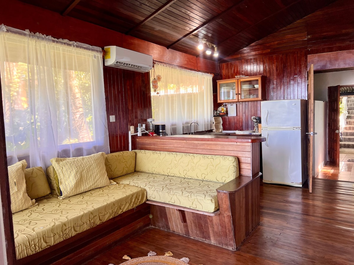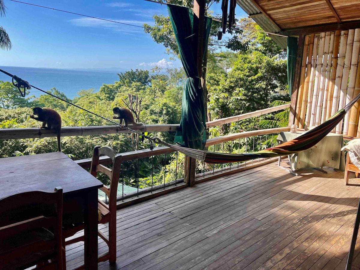 Wake up in the treetops of Manuel Antonio and take in the breathtaking panoramic ocean views from your private balcony! Have breakfast at our spa property next door with seaview (10 min walk) This studio apartment offers an unforgettable treehouse experience, with the added comfort of air conditioning. Watch the over the ocean, filling the sky with vibrant colors while surrounded by jungle wildlife like monkeys, sloths, and parrots. Enjoy amazing affordable in room massages!